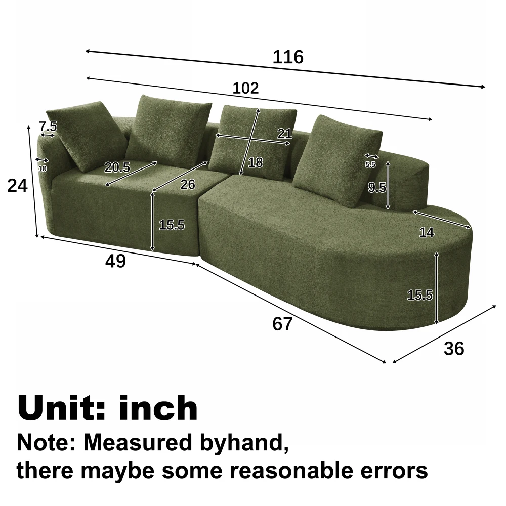 116' Curved Sectional Sofa Pearl Upholstery High-Density Sponge Chaise Lounge 2-Piece Set Living Room Furniture