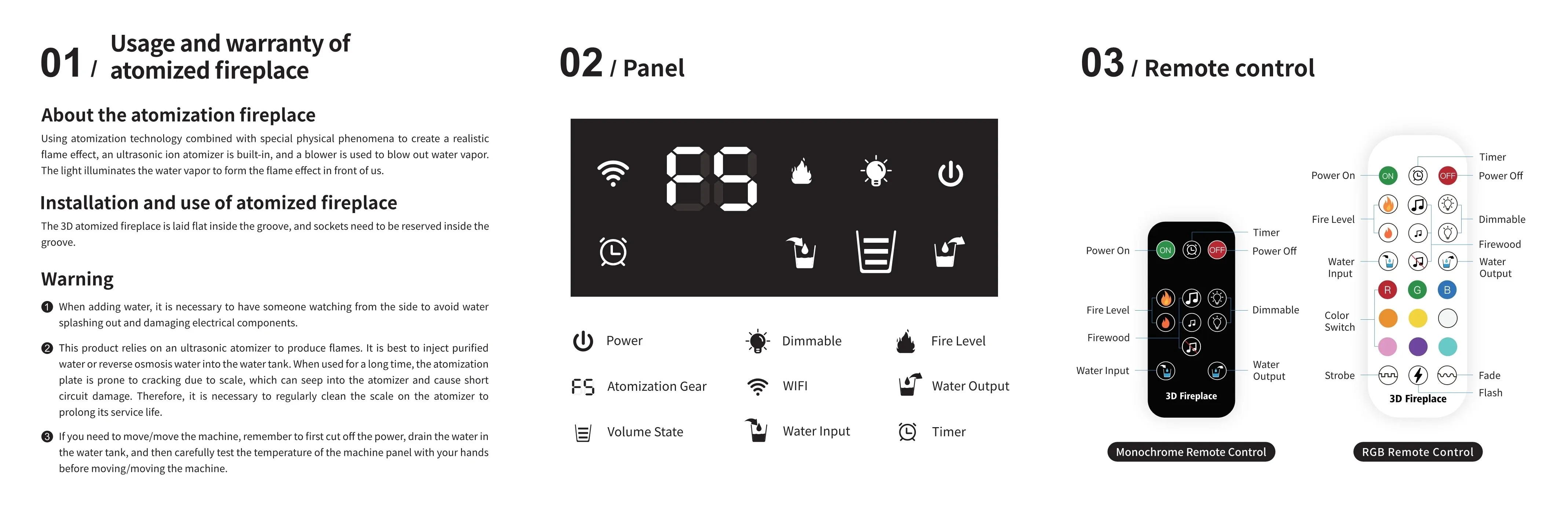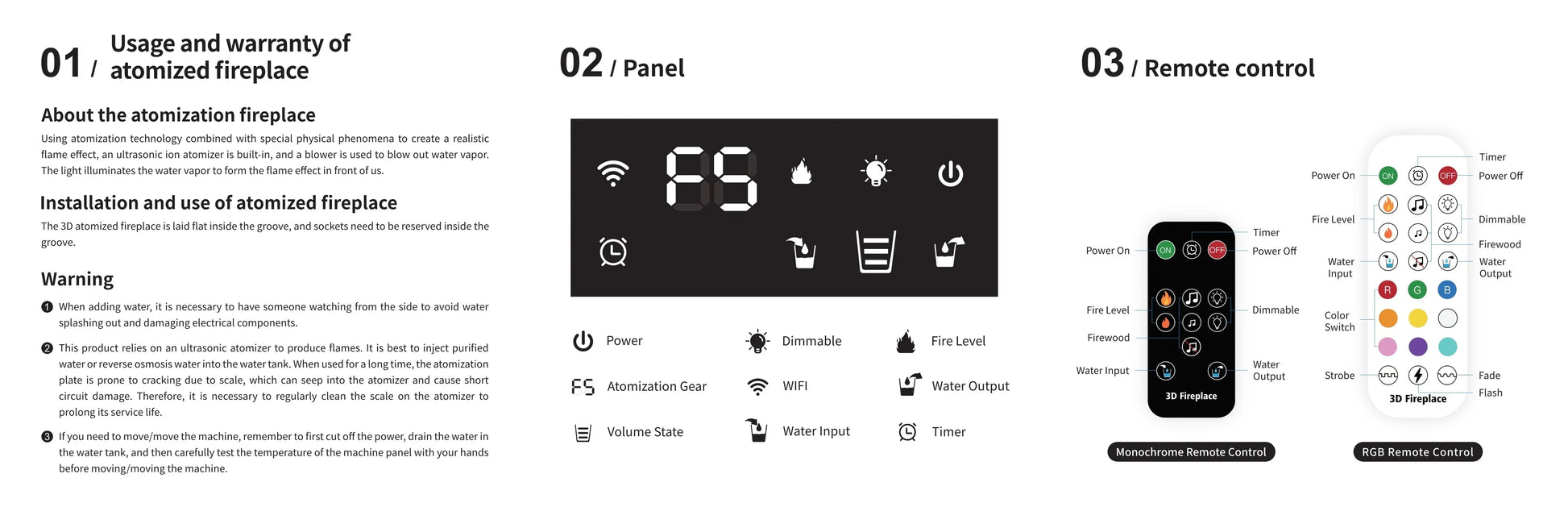 1. The 3D atomizing fireplace should be installed horizontally in a place that is not easy to move. The air convection in the fixed position is small.
