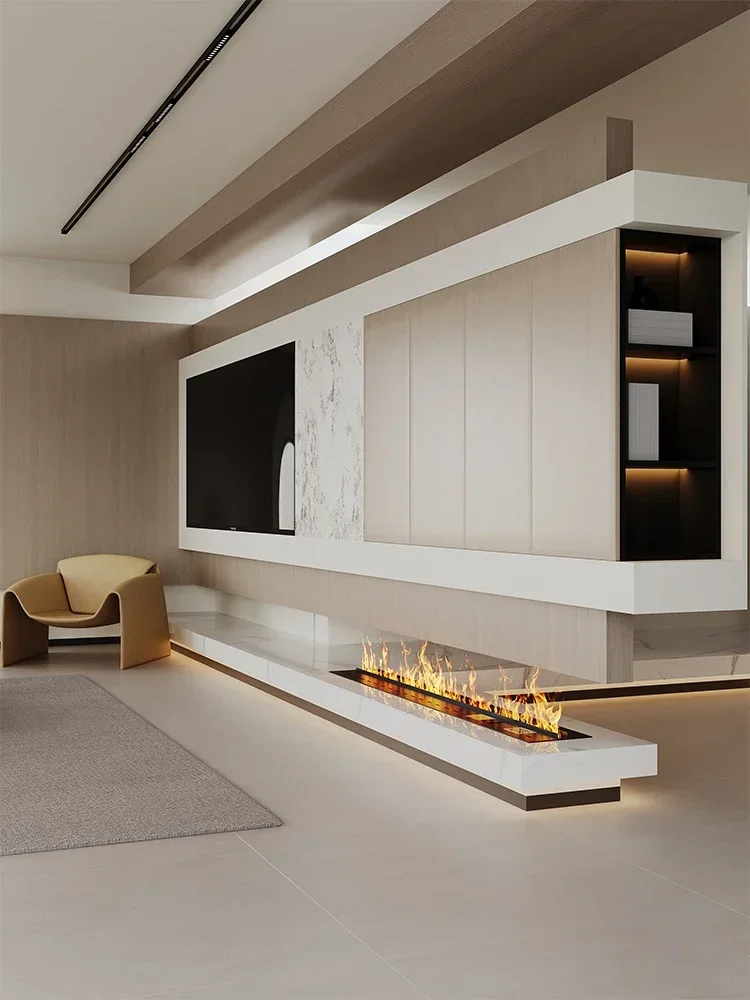 Create a safe, eco-friendly, and aesthetically pleasing atmosphere with our water vapor fireplace-experience the beauty of a crackling fire without any traditional risks.