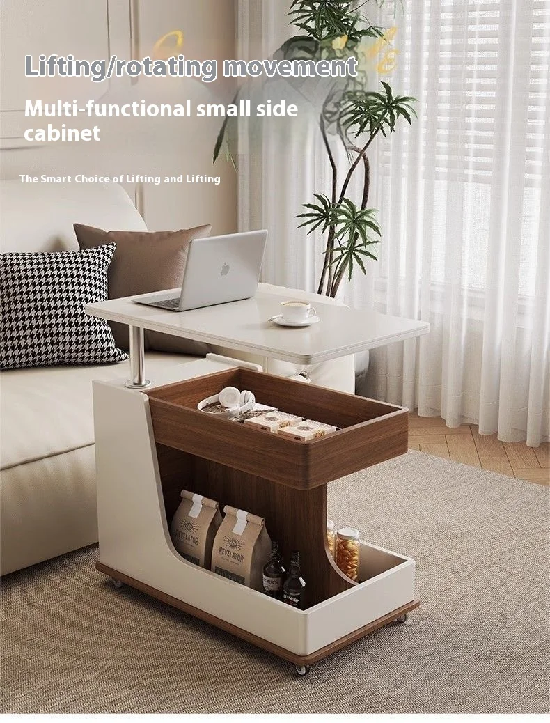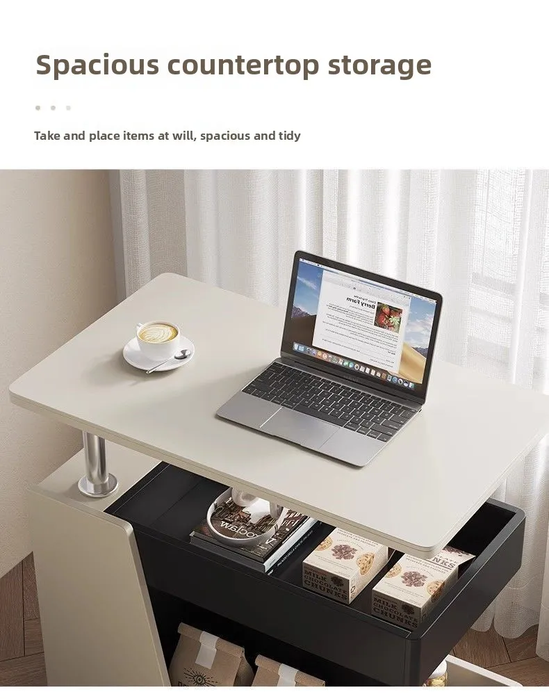 The minimalist modern aesthetic seamlessly complements various interior styles while the integrated storage compartments and smooth-rolling casters provide practical convenience.